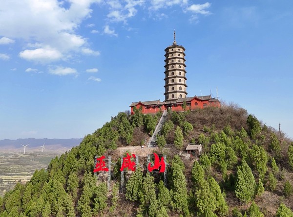 山不在高,有仙则名。瑶台山又称巫咸山。瑶台山地处中条山前沿,距县城大约2公里,与春燕山隔河相望,是一座孤山。看,它的形体特别, 呈圆锥体,锥体峰高约181米,直径约50米,孤峰峭拔,苍翠摩空,犹如一口绿色的大钟罩在地上。矗立在山巅之上的九层佛塔,高43.69米,耸入云天,俯瞰大地。整个瑶台山既显得挺拔孤傲,又有一份神秘和非凡。